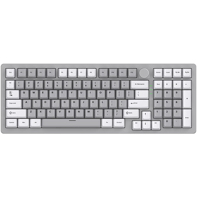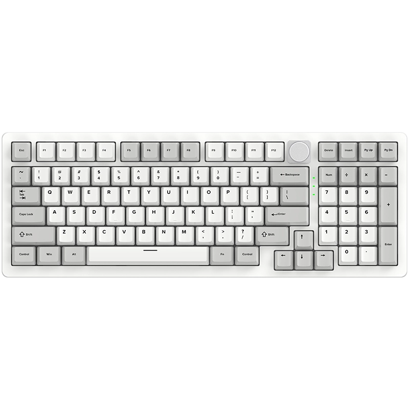 The DK98 mechanical keyboard features a full-function 98% layout, providing a compact alternative to traditional full-size keyboards while retaining a numeric keypad and essential function keys. It is ideal for users who require high efficiency for gaming, office work, and data input.
