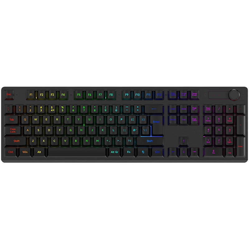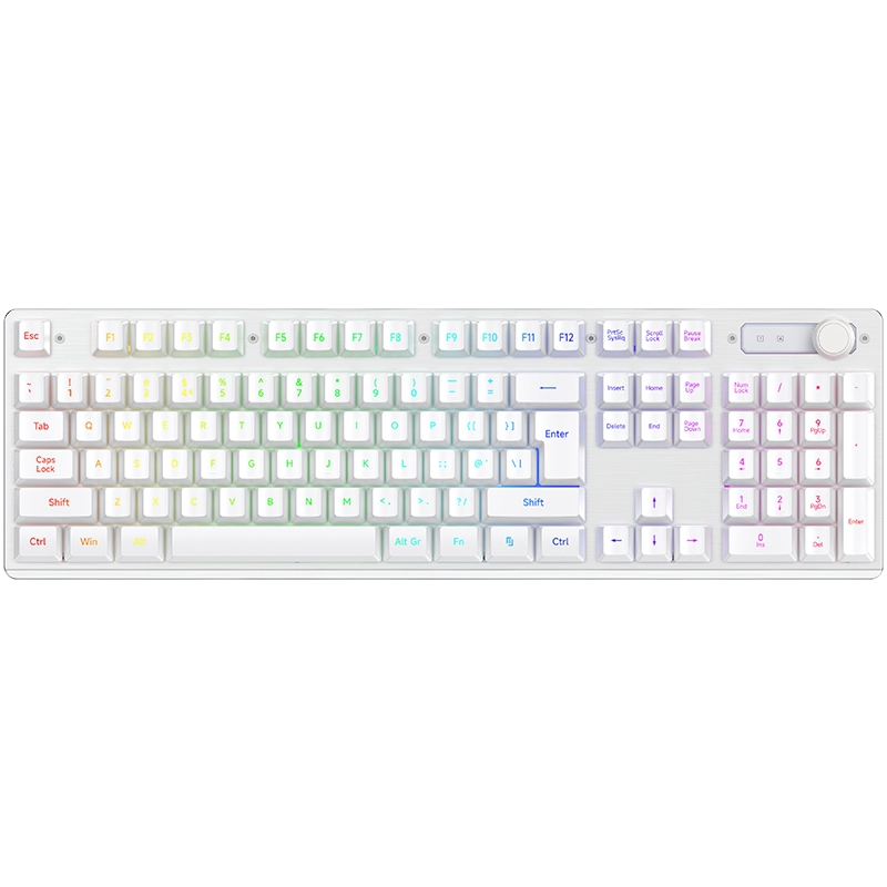 Equipped with RGB backlighting, the keyboard delivers vibrant lighting effects that enhance desktop aesthetics and visibility in low-light environments. Users can easily switch between 2.4G wireless mode for a clean, cable-free setup and wired USB mode for stable, uninterrupted performance.